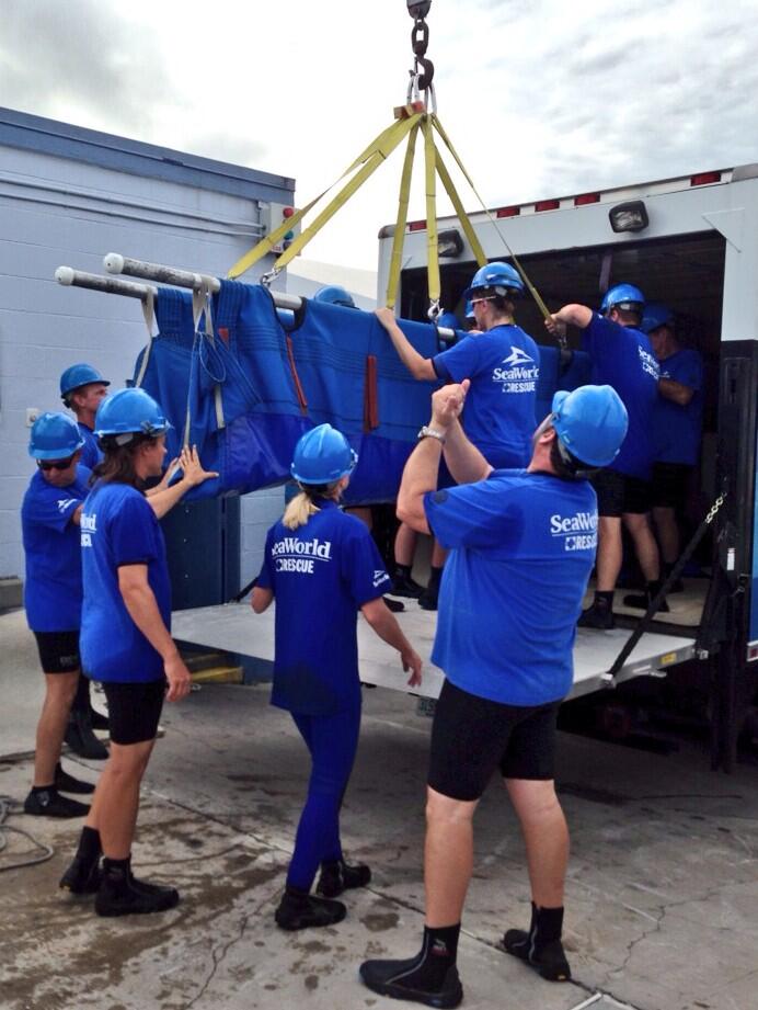 That's not construction work you see up there -- that's the amazing and dedicated Sea World Animal Rescue team loading up one of four Florida manatees that will be released back into the wild today.